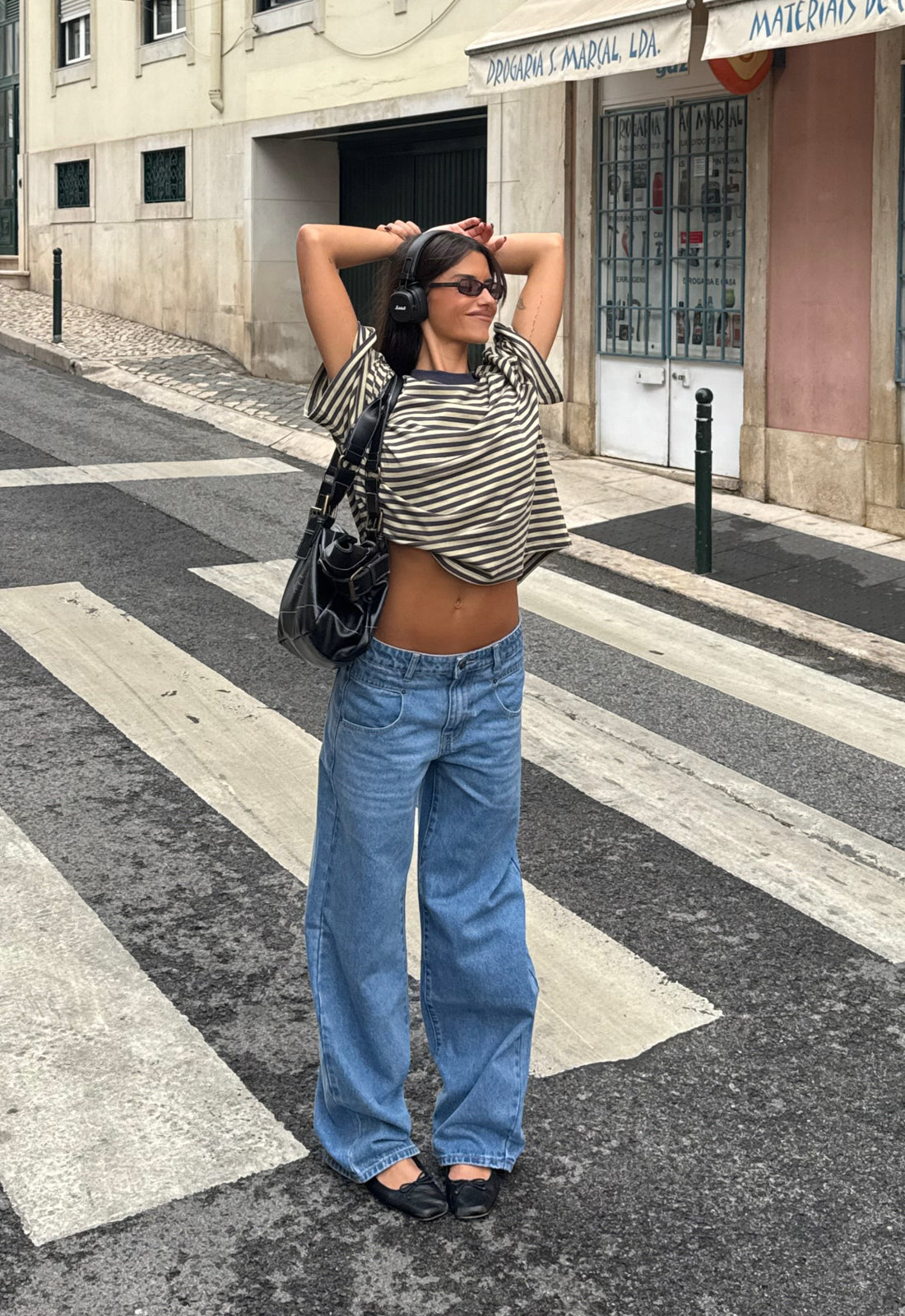 BLOOM SHORT SLEEVE + ALABAMA JEANS + HERITAGE HALTER NOIR STRIPE SET
